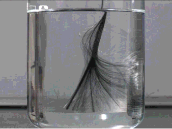 炭素繊維を水中に入れると、繊維1本1本がふわっと広がる。