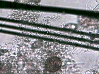 (写真は、炭素繊維を活性汚泥に入れたとき) |