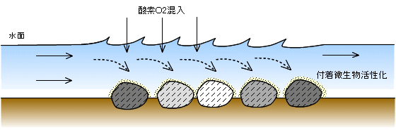 流れや落差による酸素の溶解 |